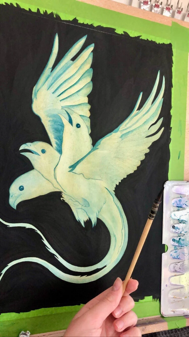 As an illustrator I thoroughly enjoy collecting reference images (sometimes up to 100 for a complex painting), as it allows me to explore how other artists create their own features such as: eyes, hair, fingers, birds, linework and colour palettes.
