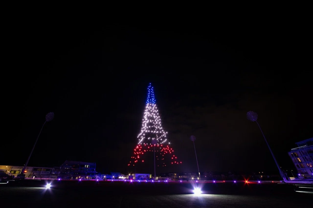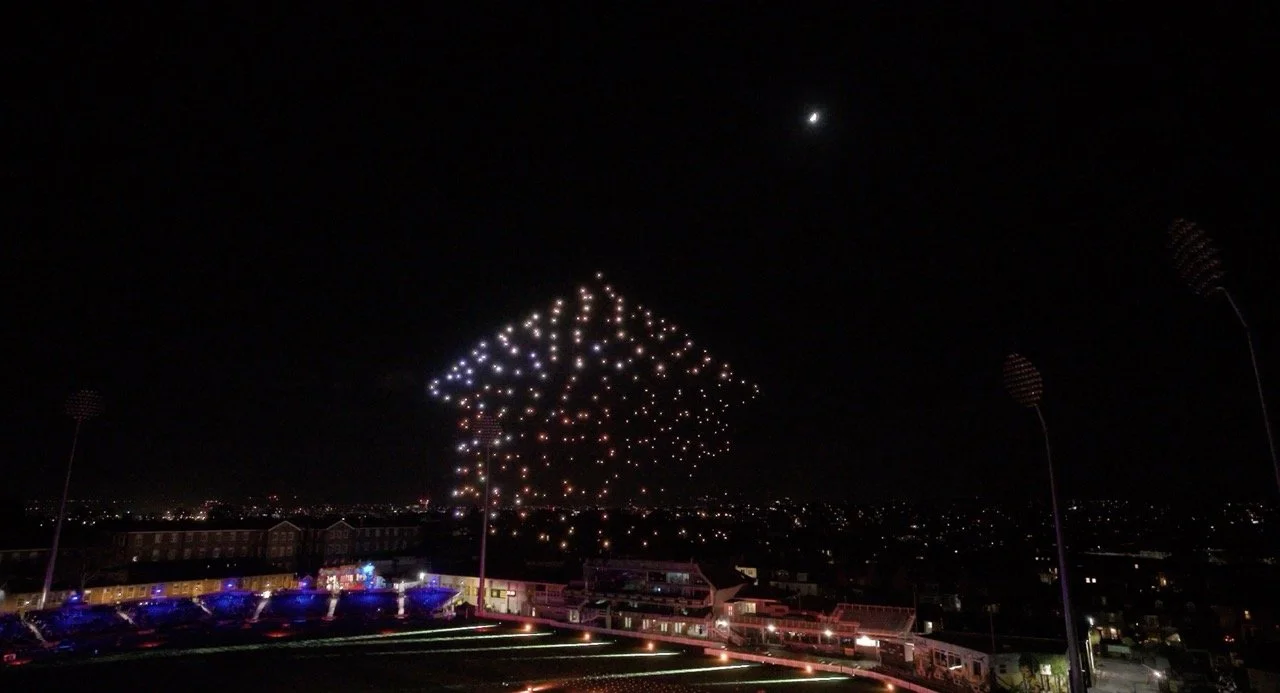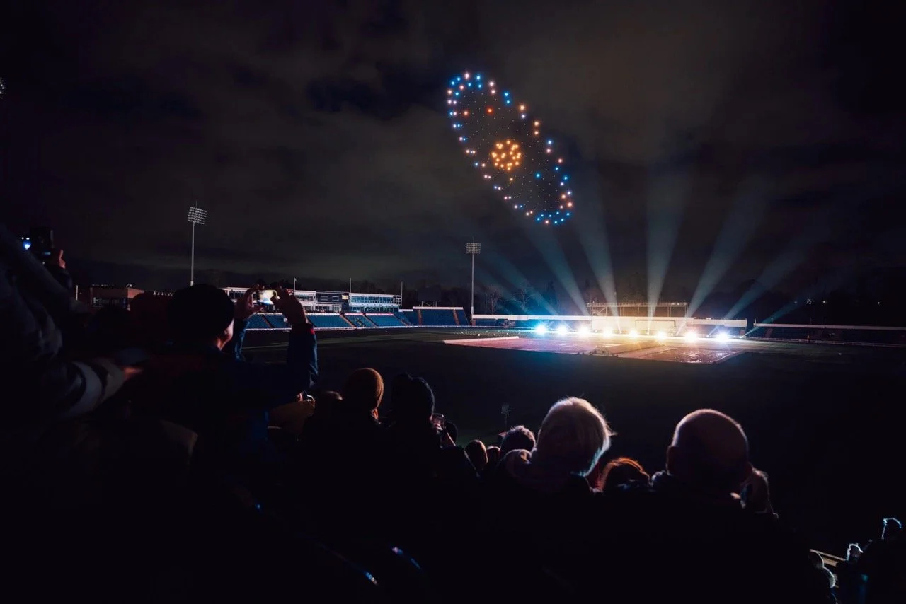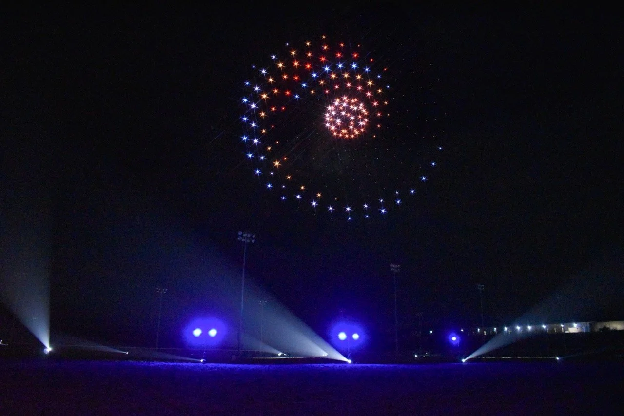 Staged into 3 parts, we flew 648 drones for 25 mins total.